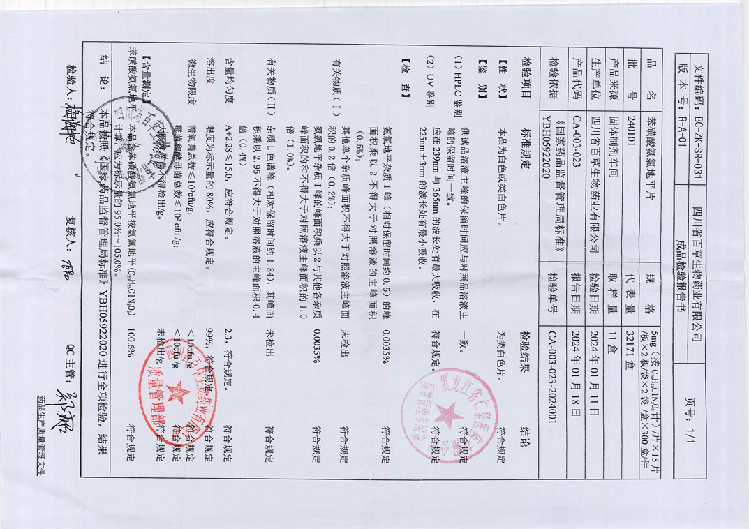 苯磺酸氨氯地平片24