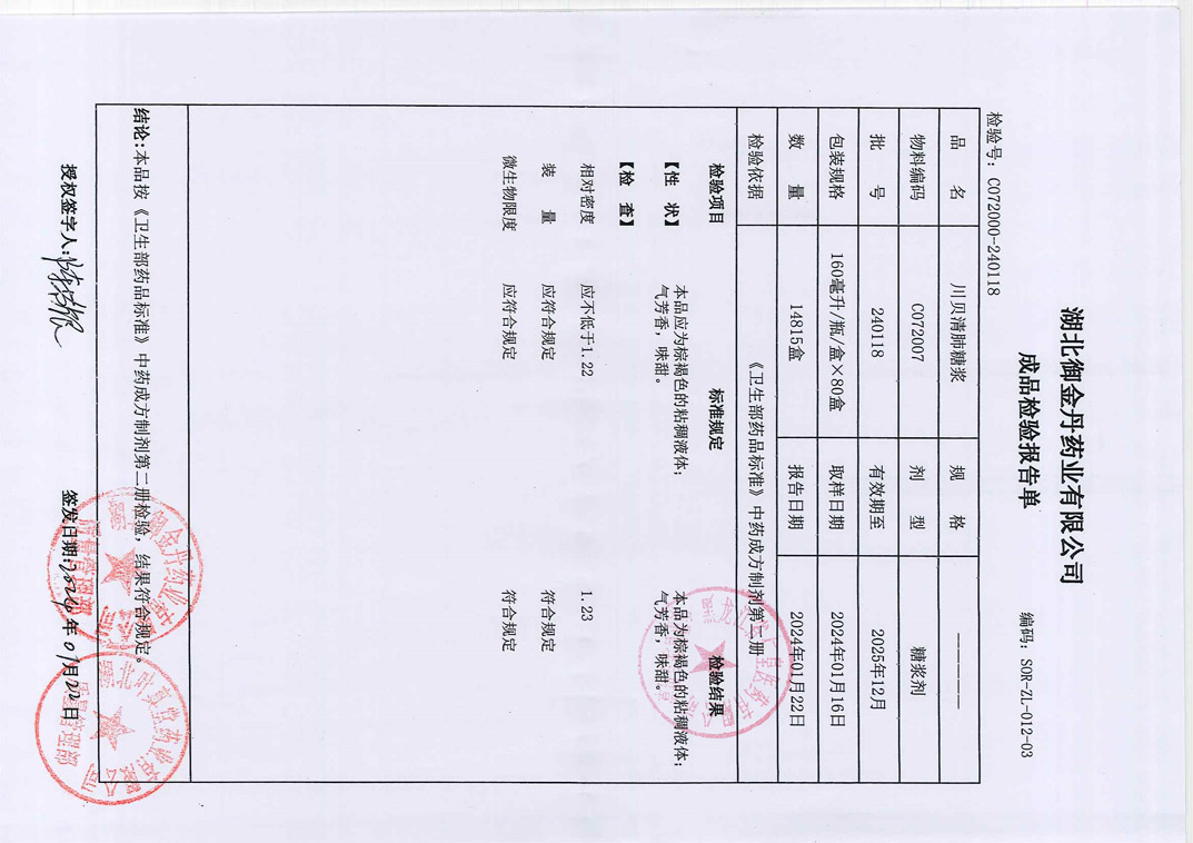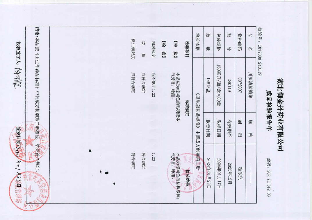 川贝清肺糖浆2401