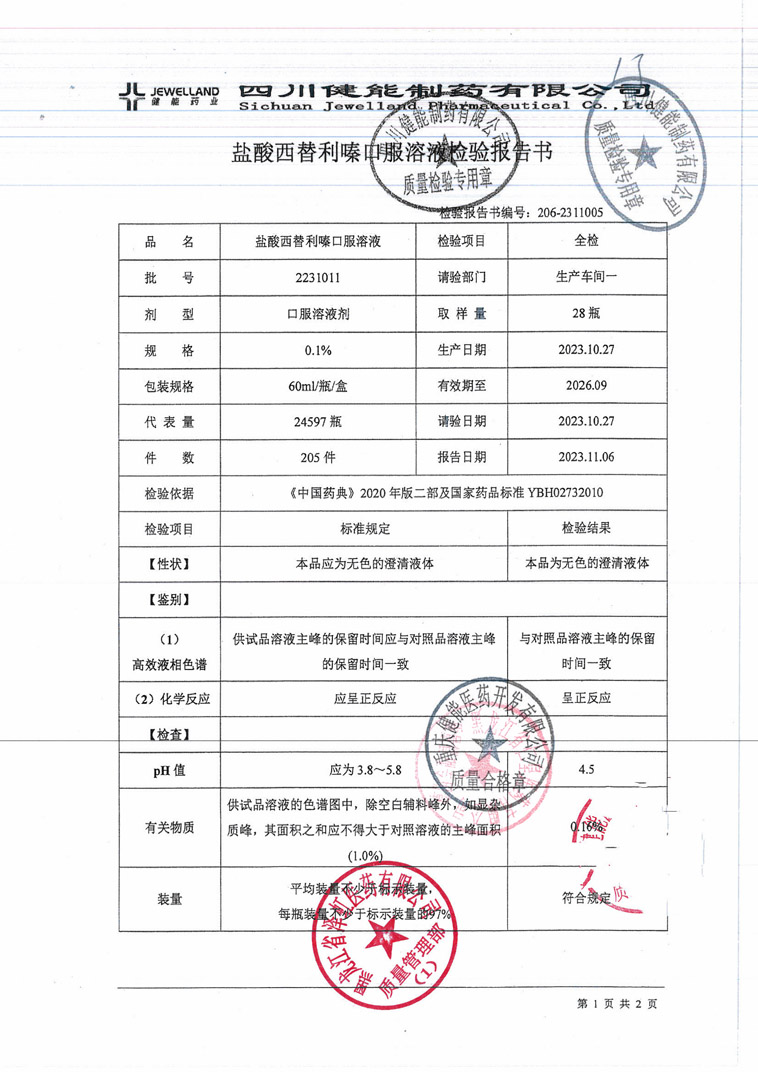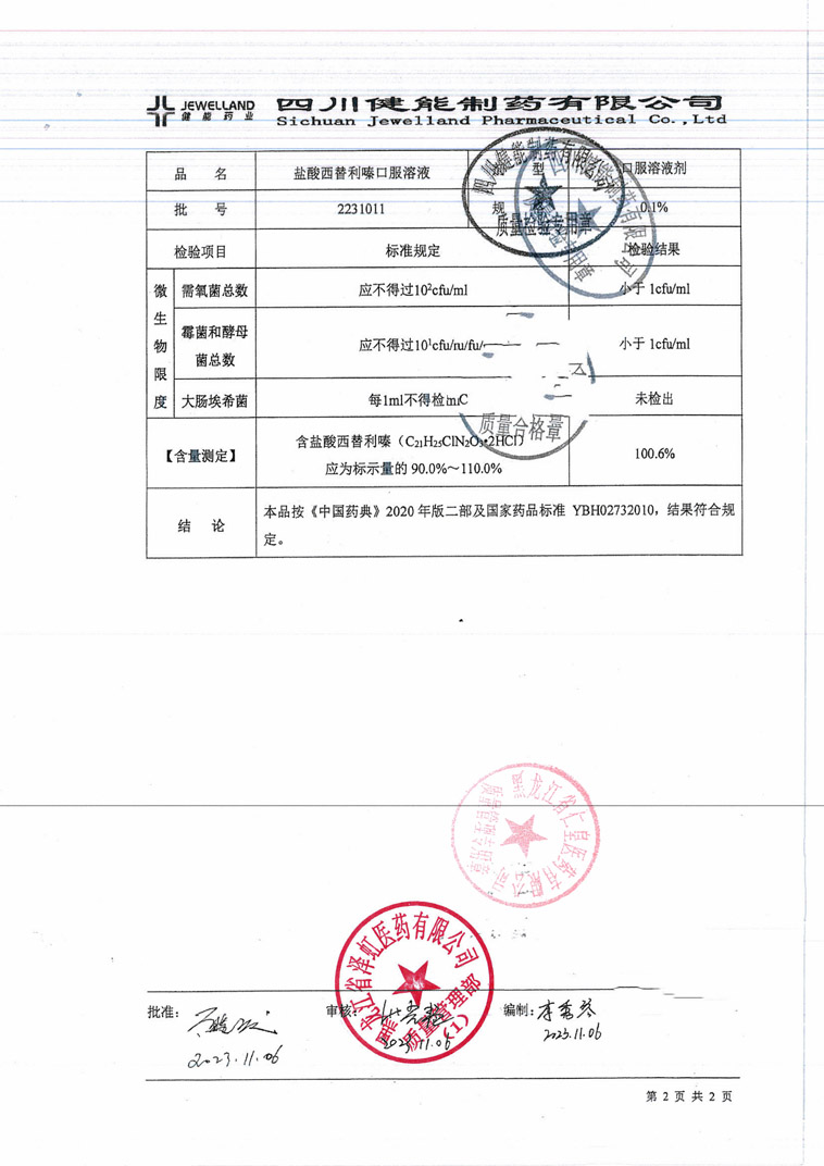 盐酸西替利嗪口服溶液