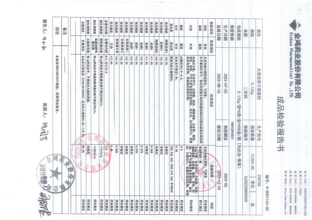 头孢克洛干混悬剂22