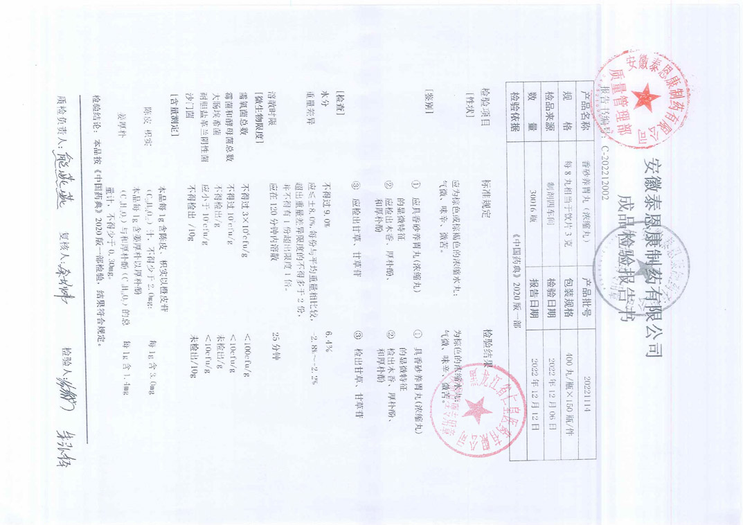 香砂养胃丸20221