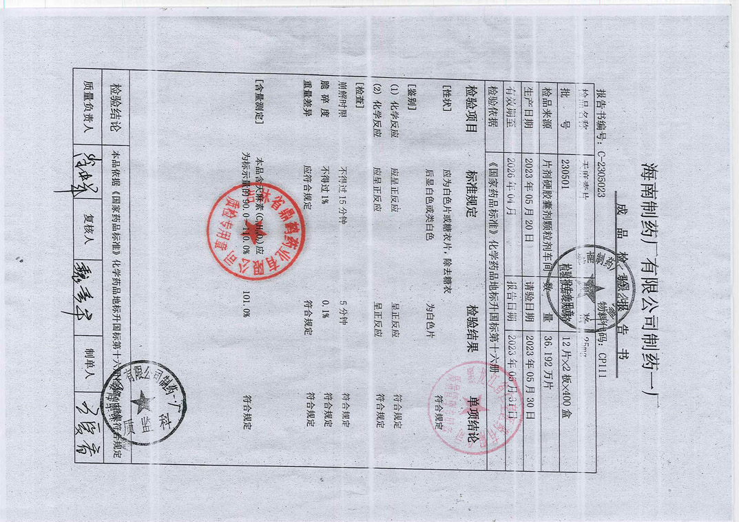 天麻素片230501