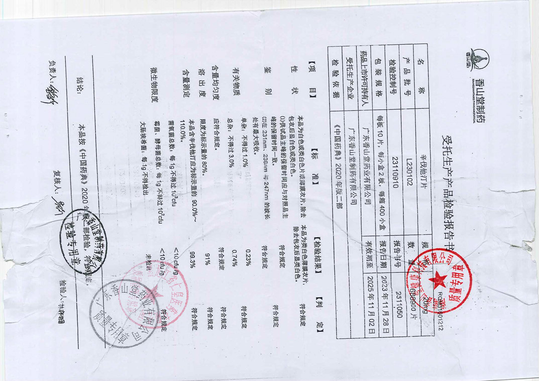 辛伐他汀片L2301