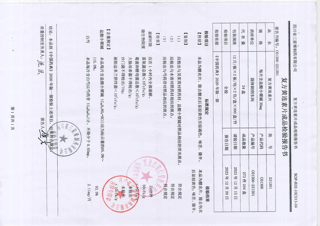 复方黄连素片2312
