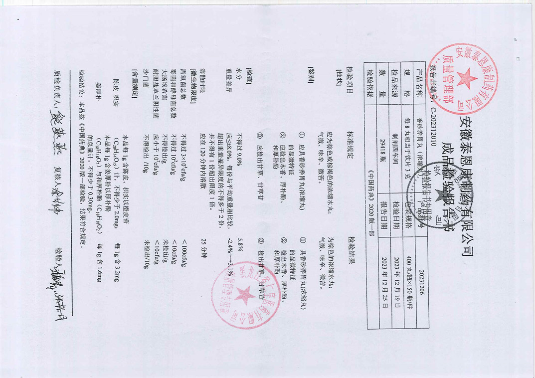 香砂养胃丸20231