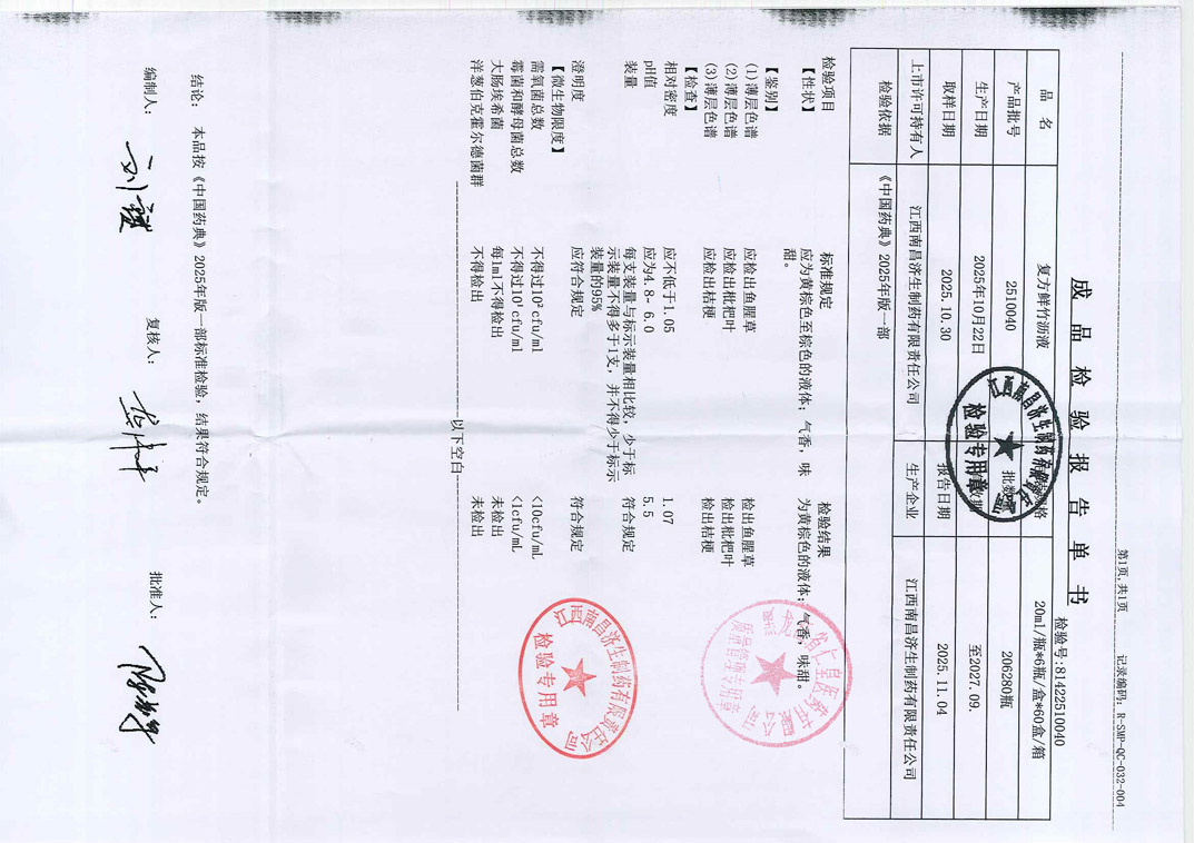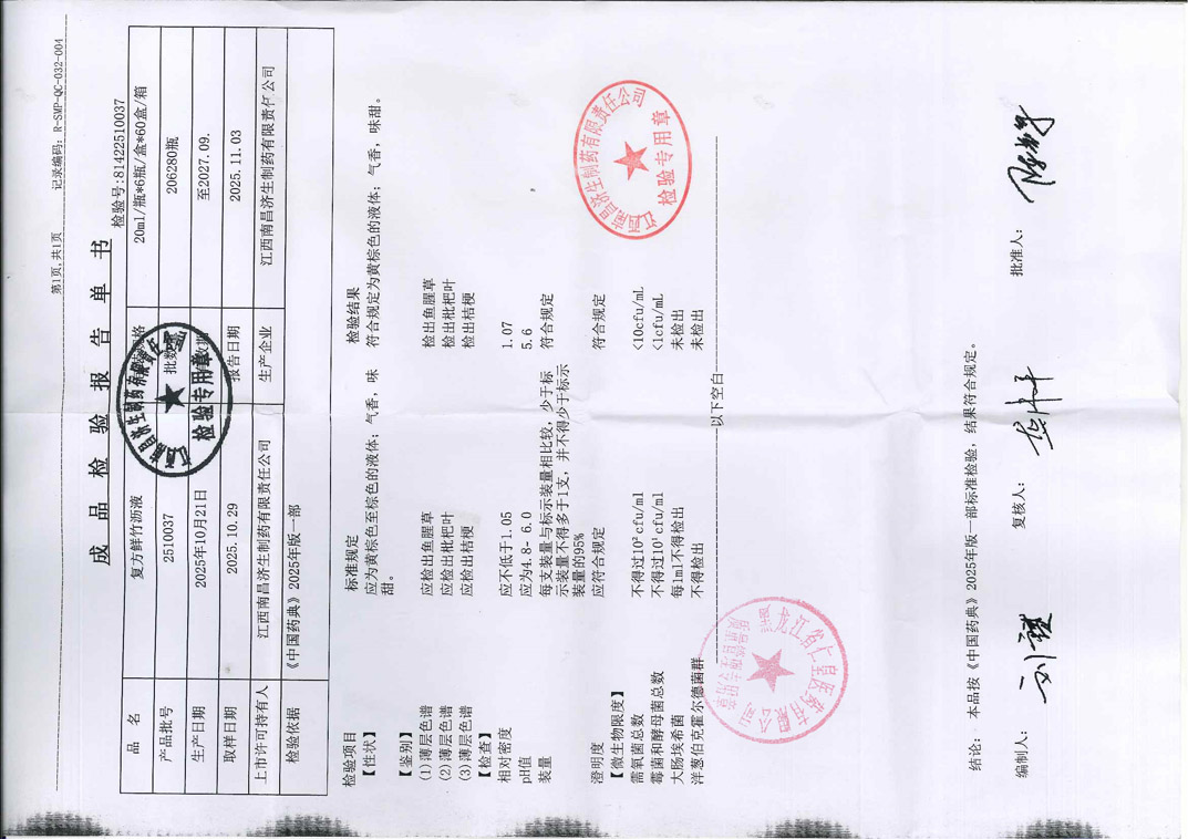 复方鲜竹沥液2510