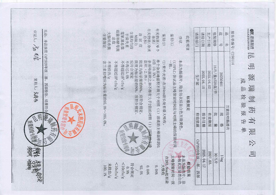 兰索拉唑肠溶片202