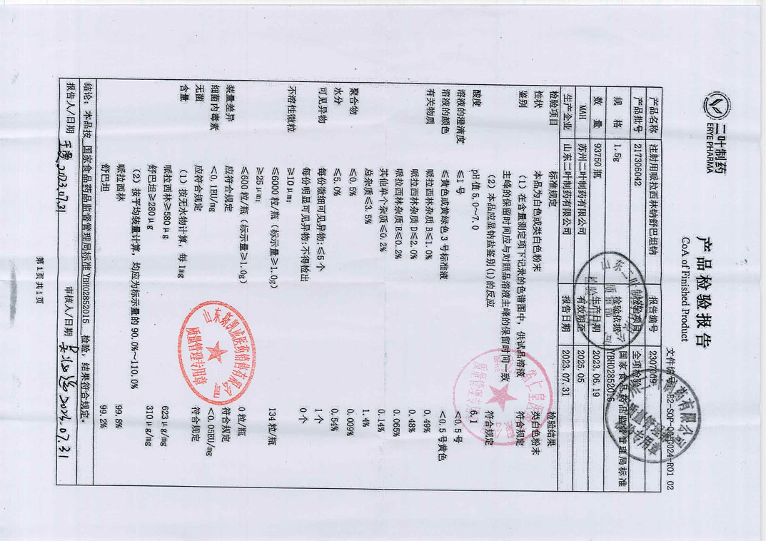 注射用哌拉西林钠舒巴