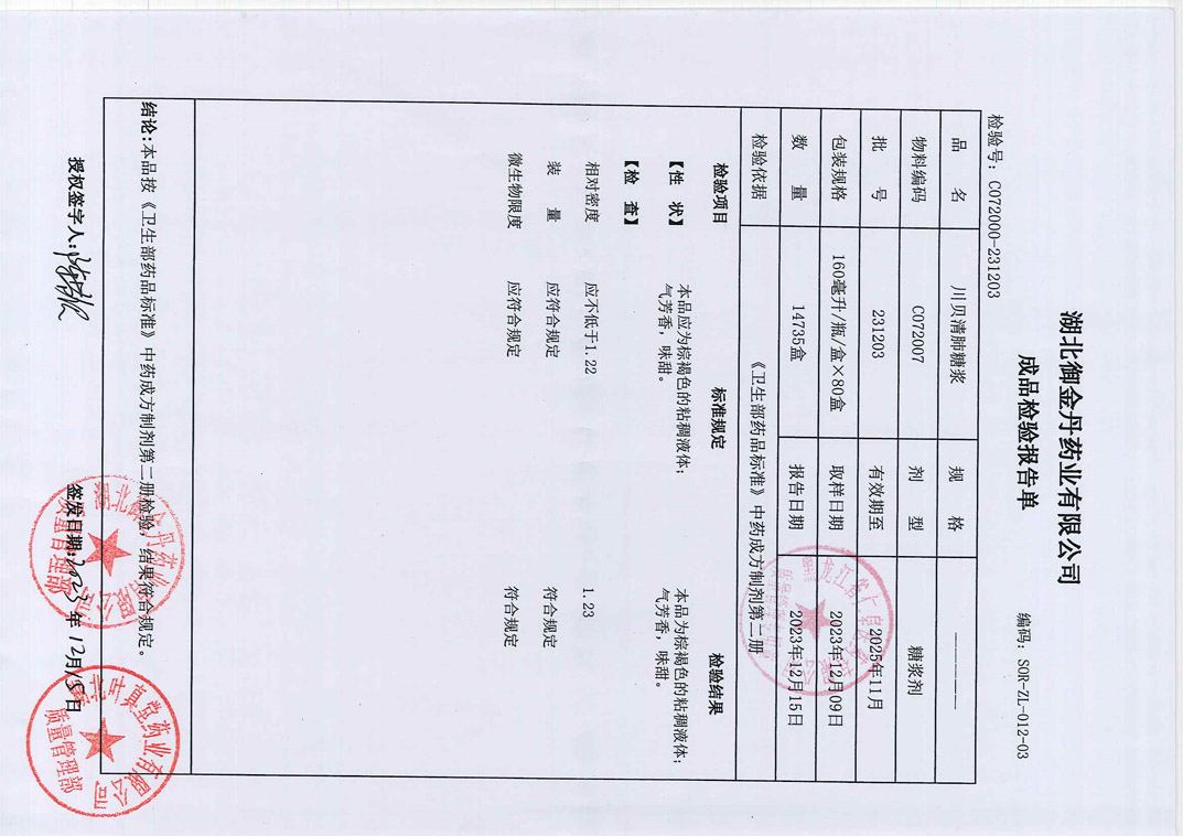 川贝清肺糖浆2312
