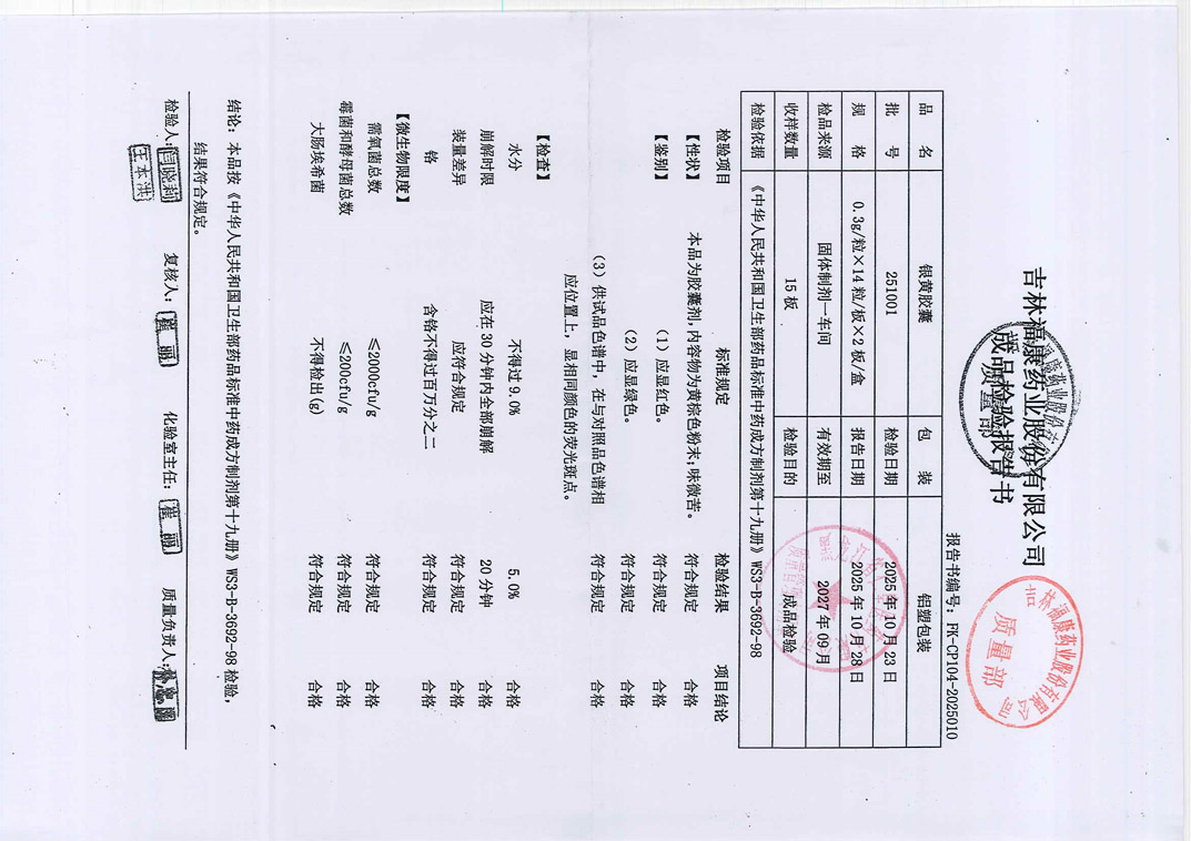 银黄胶囊251001