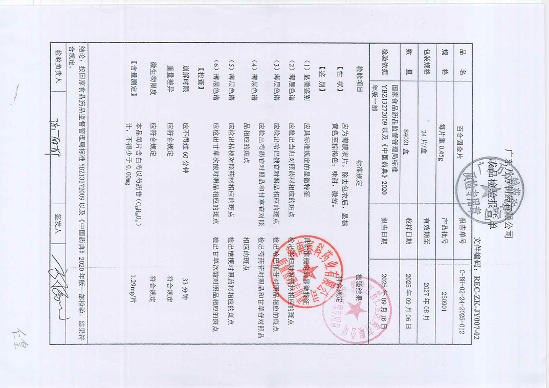 百合固金片25090