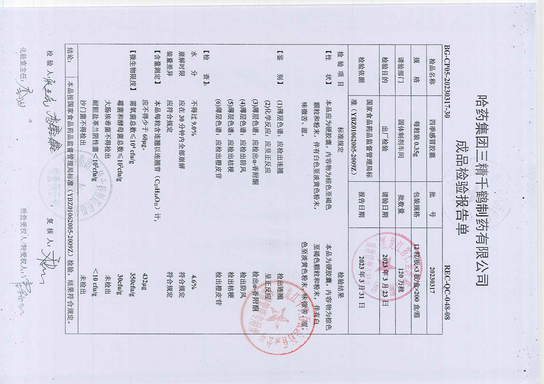 四季感冒胶囊2023