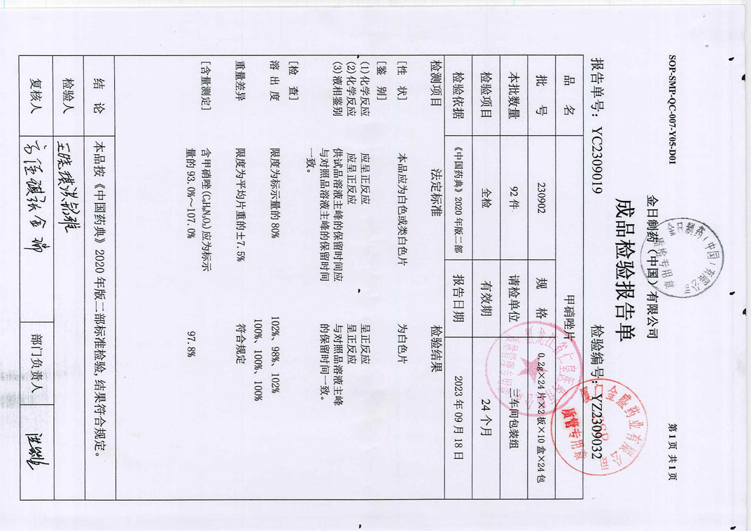 甲硝唑片230902