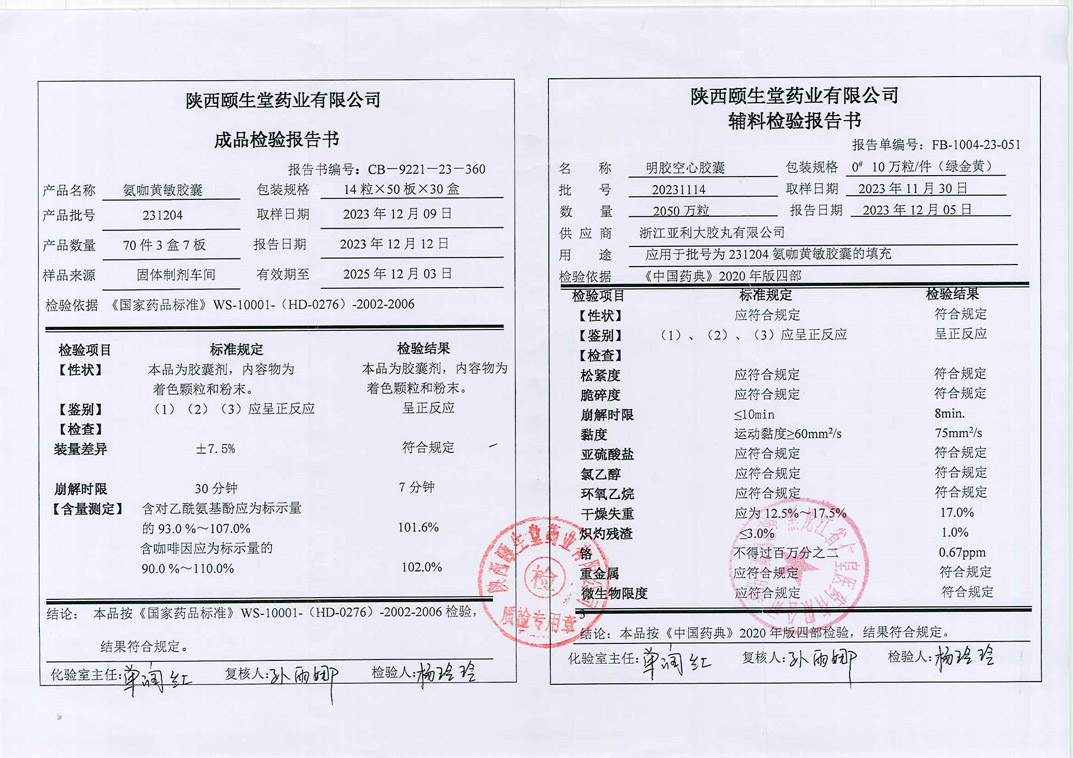 氨咖黄敏胶囊2312