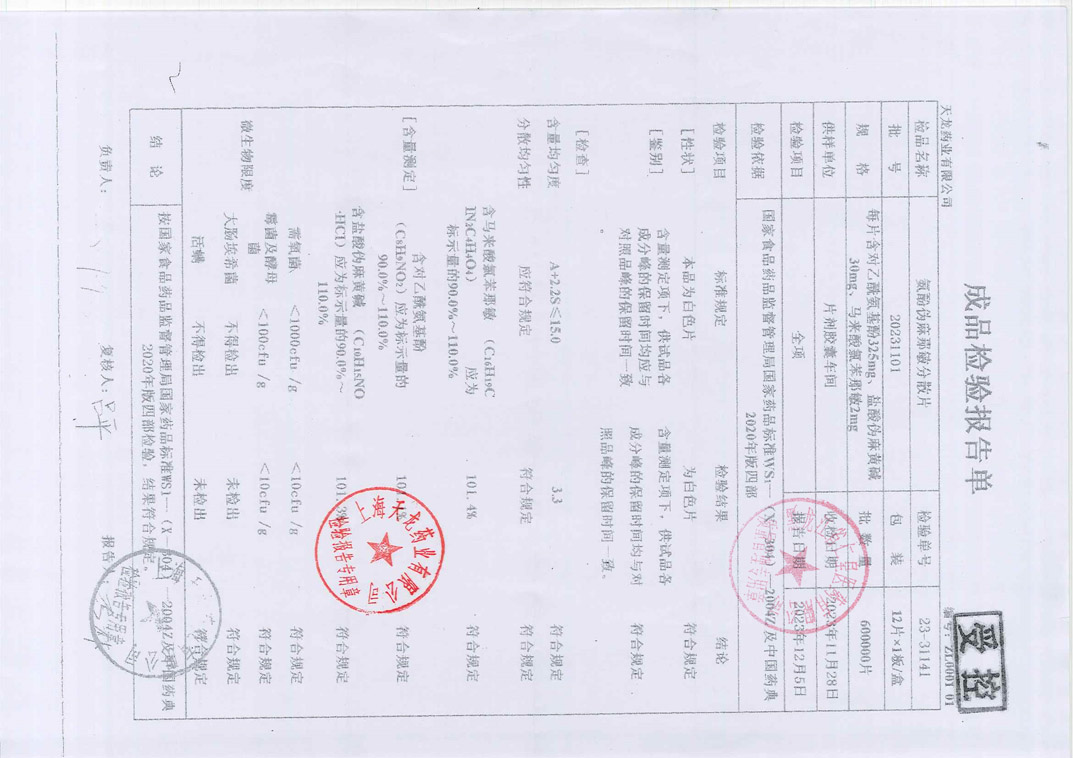 氨酚伪麻那敏分散片2