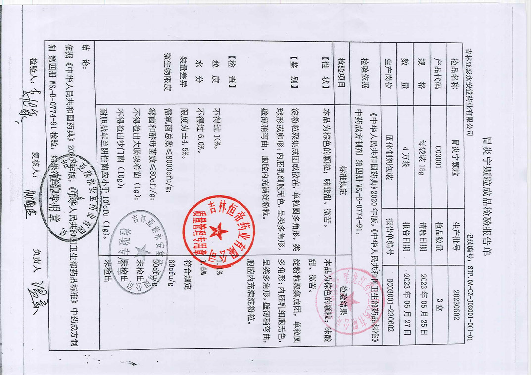 胃炎宁颗粒20230