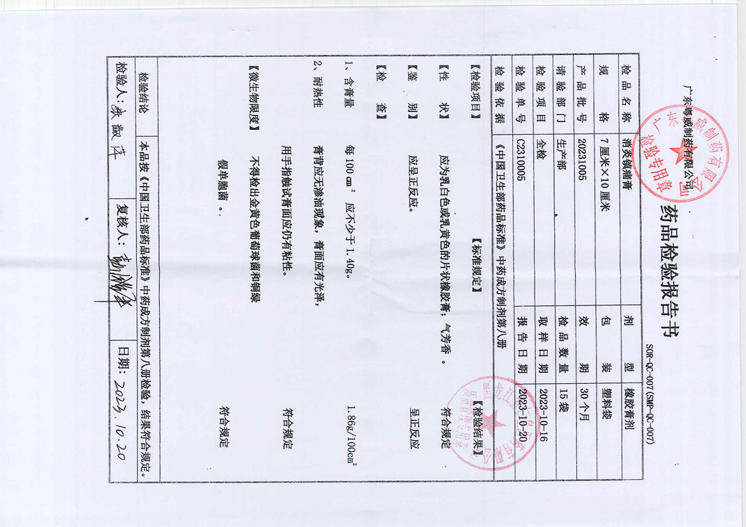 消炎镇痛膏20231