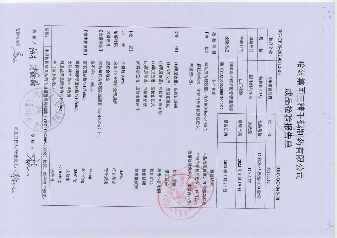 四季感冒胶囊2023