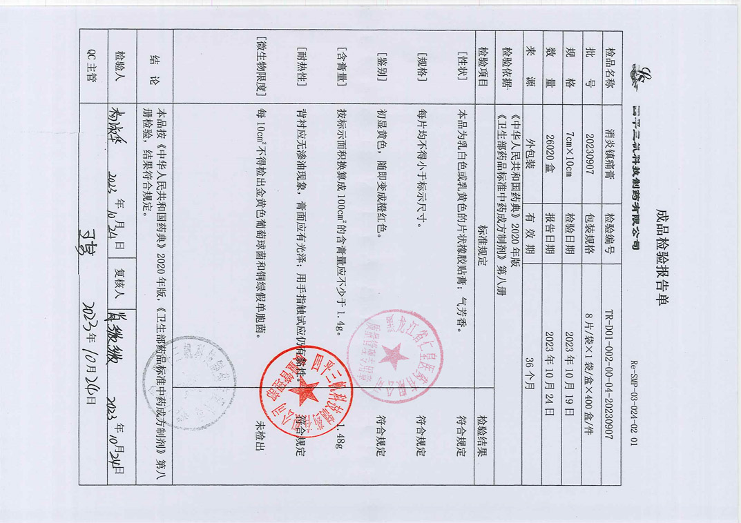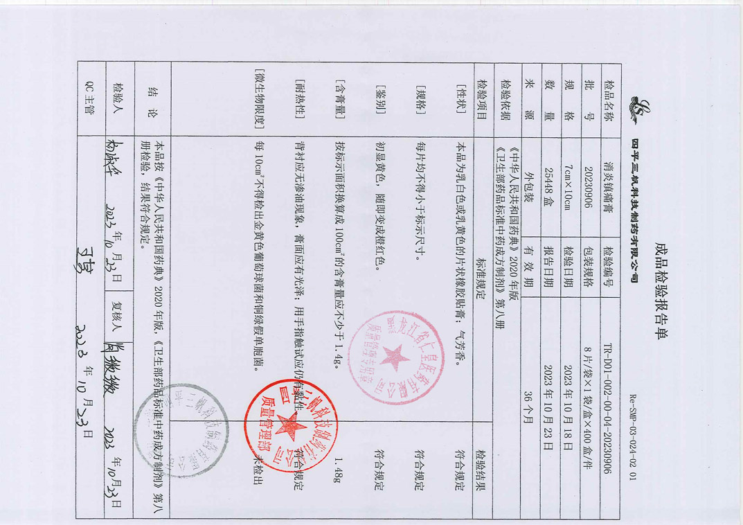 消炎镇痛膏20230
