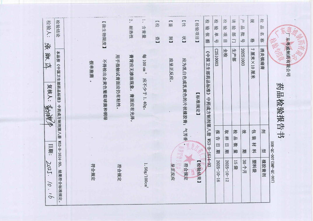 消炎镇痛膏20251