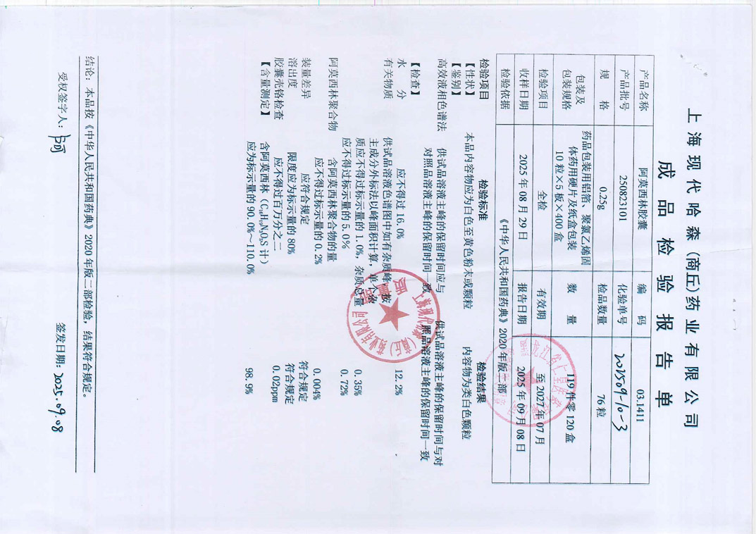 阿莫西林胶囊2508