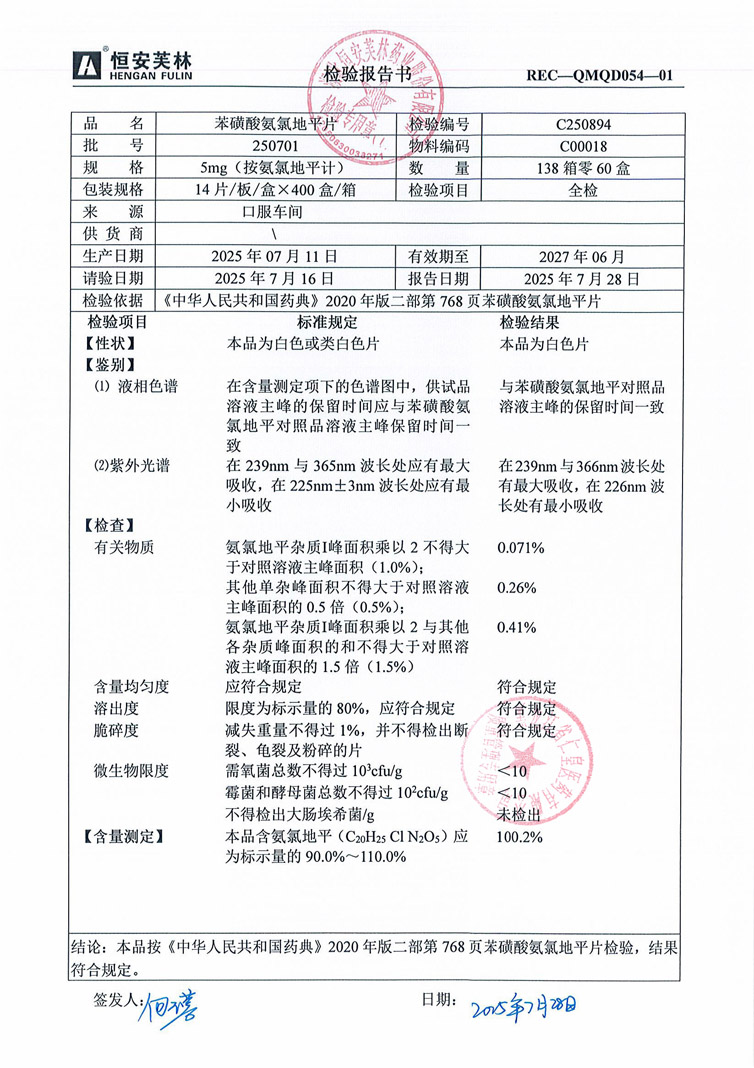 苯磺酸氨氯地平片25