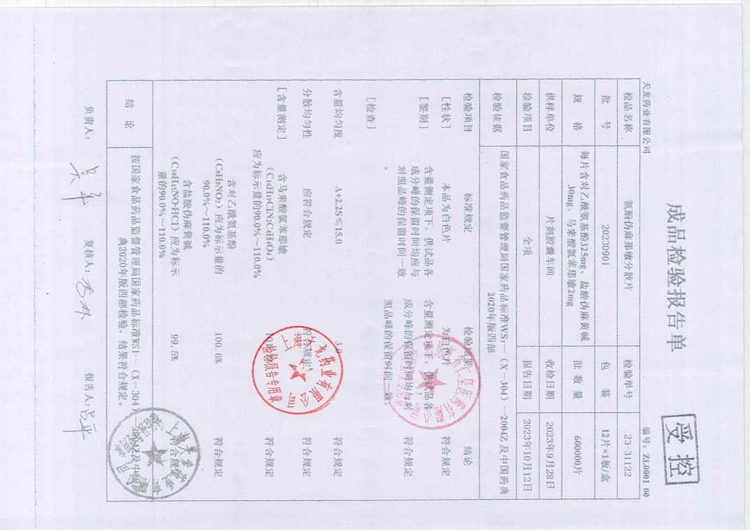 氨酚伪麻那敏分散片2