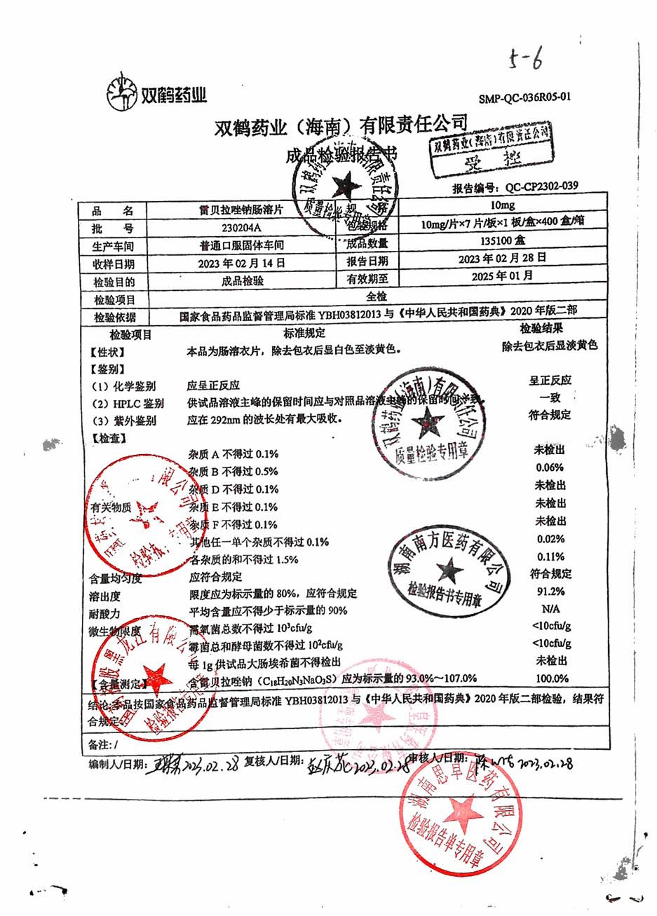雷贝拉唑钠肠溶片23