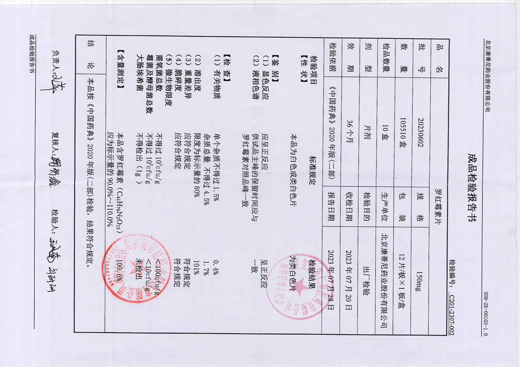 罗红霉素片20230
