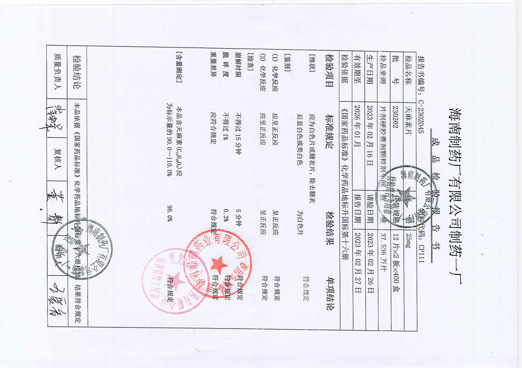 天麻素片230202