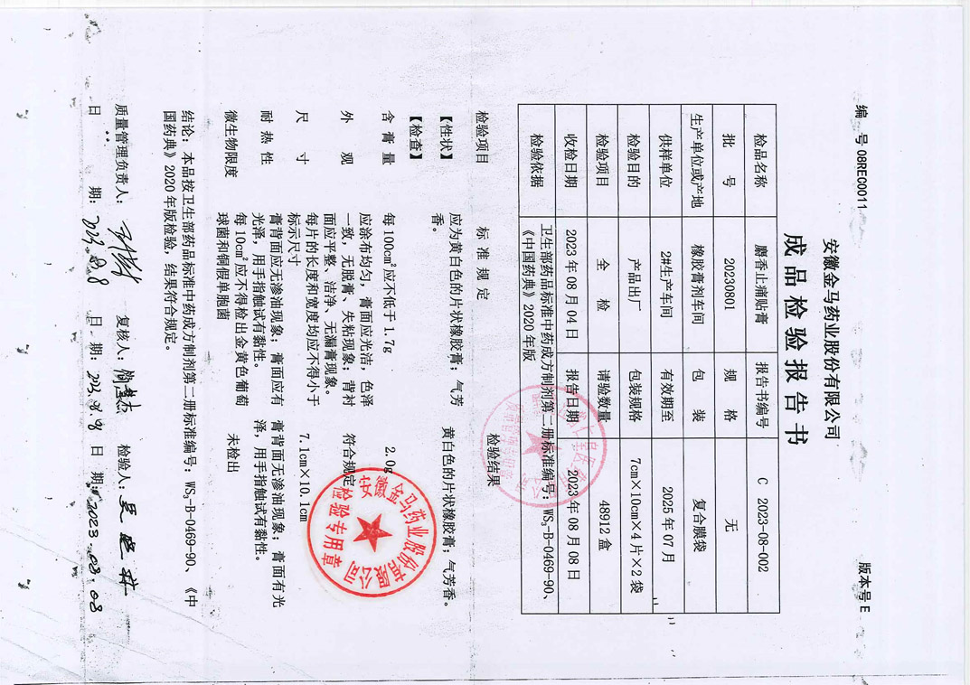 麝香止痛贴膏2023