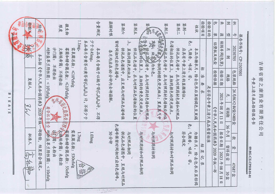 牛黄上清片20230