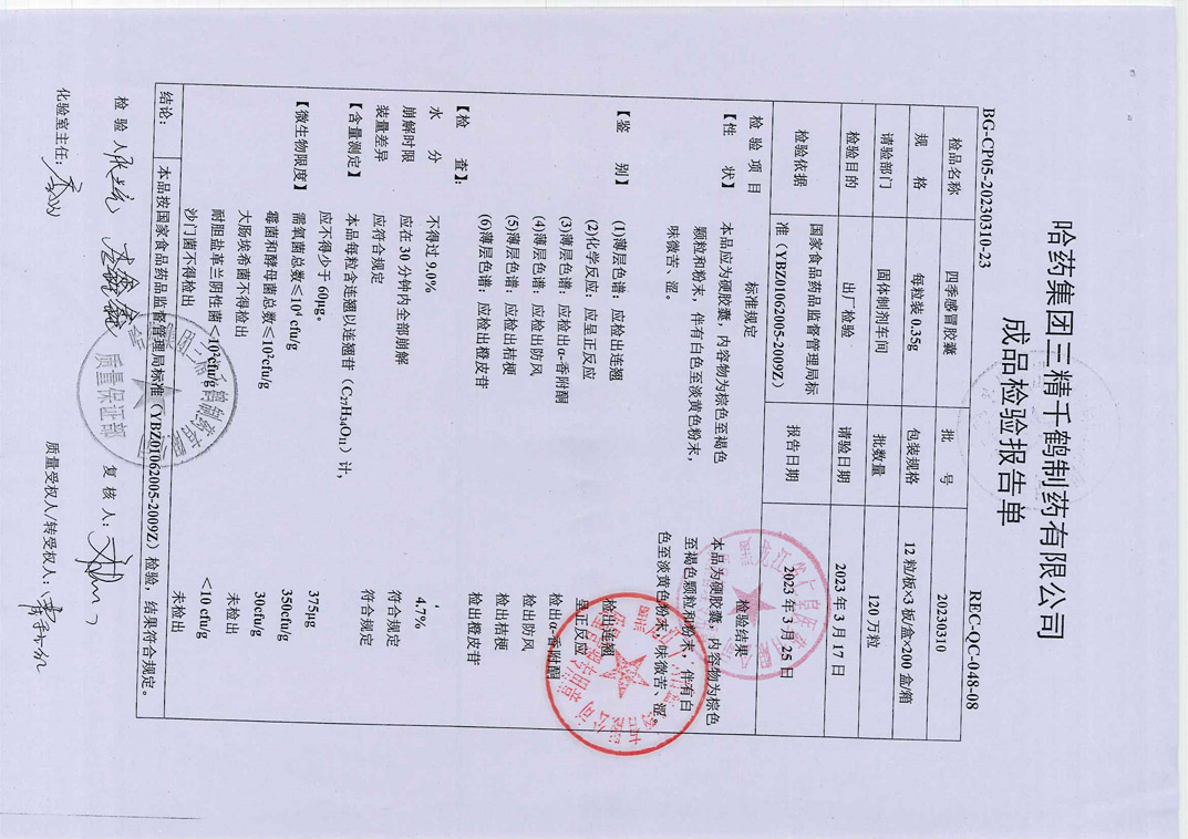 四季感冒胶囊2023