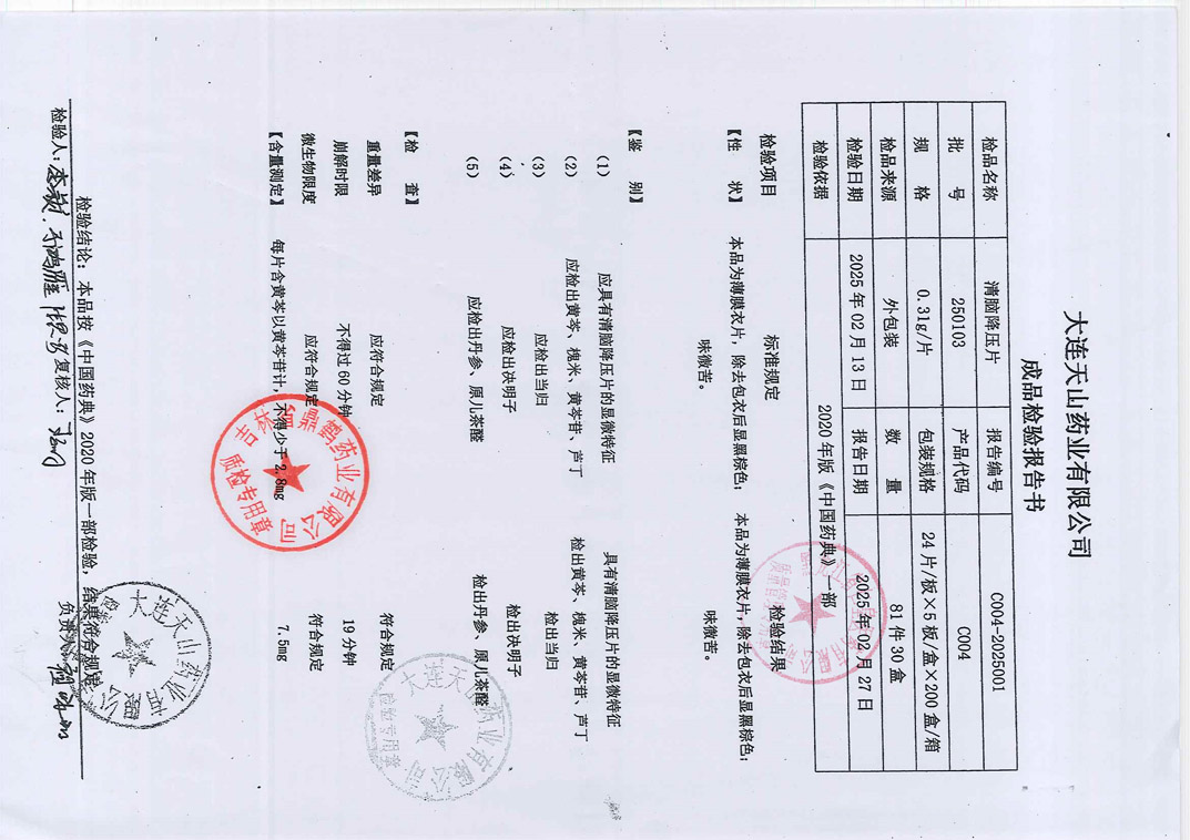 清脑降压片25010