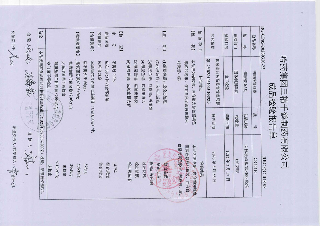 四季感冒胶囊2023