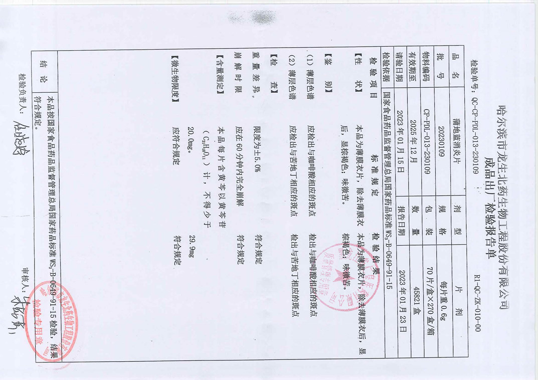 蒲地蓝消炎片2023