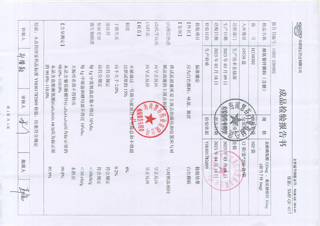 赖氨葡锌颗粒H230