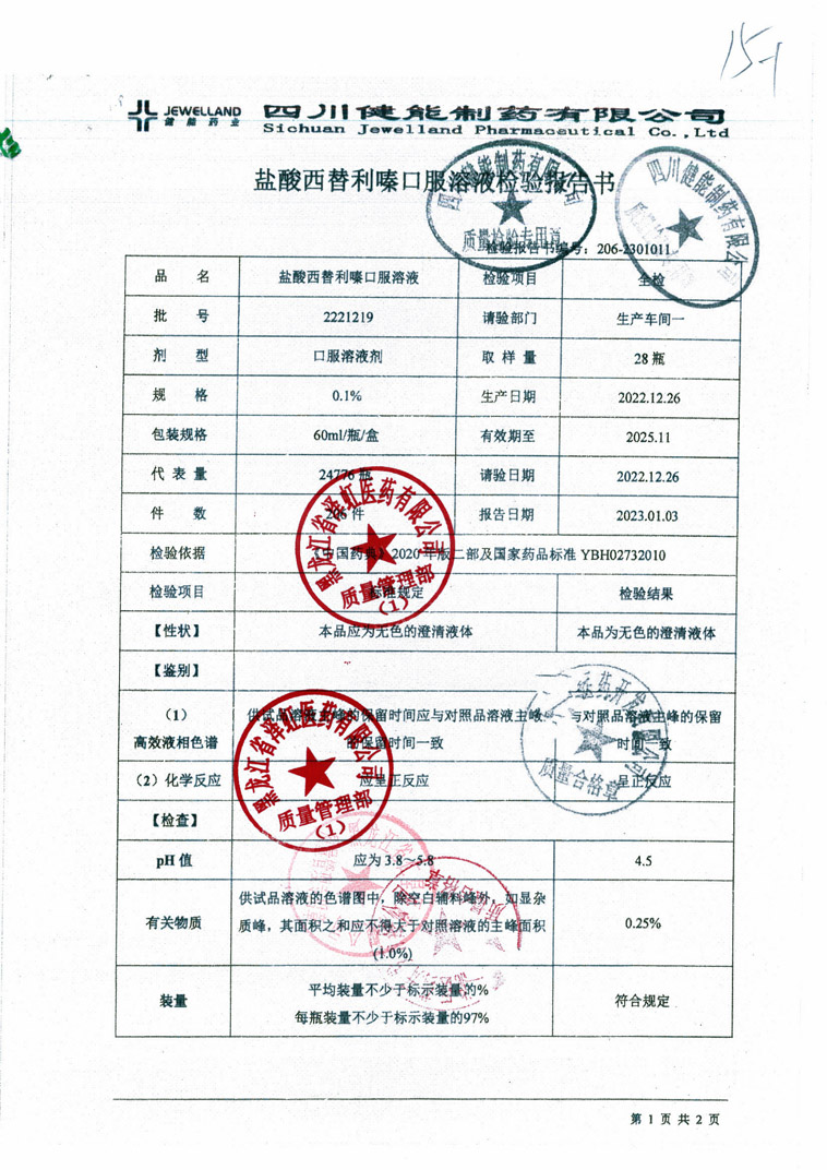 盐酸西替利嗪口服溶液