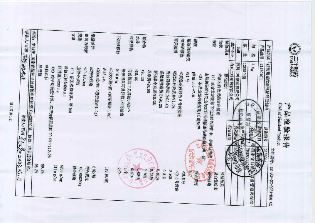 注射用哌拉西林钠舒巴