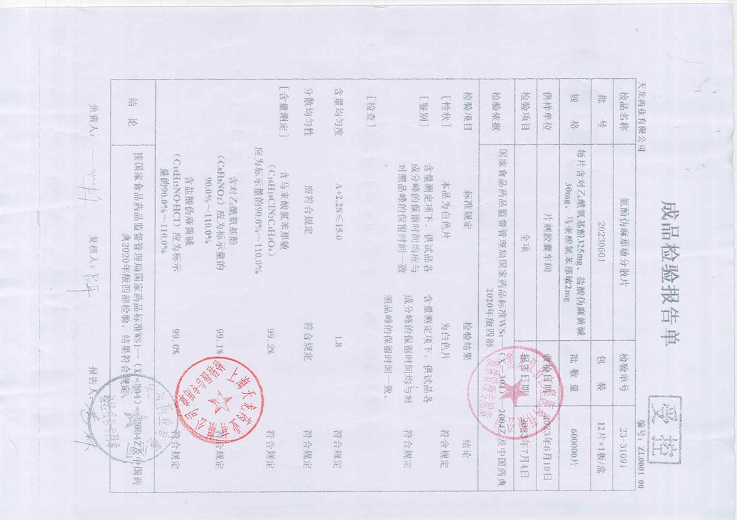 氨酚伪麻那敏分散片2