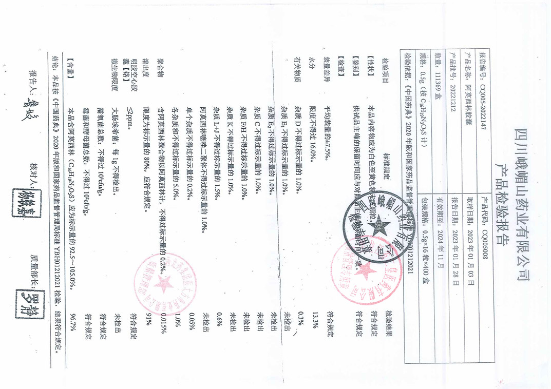 阿莫西林胶囊2022