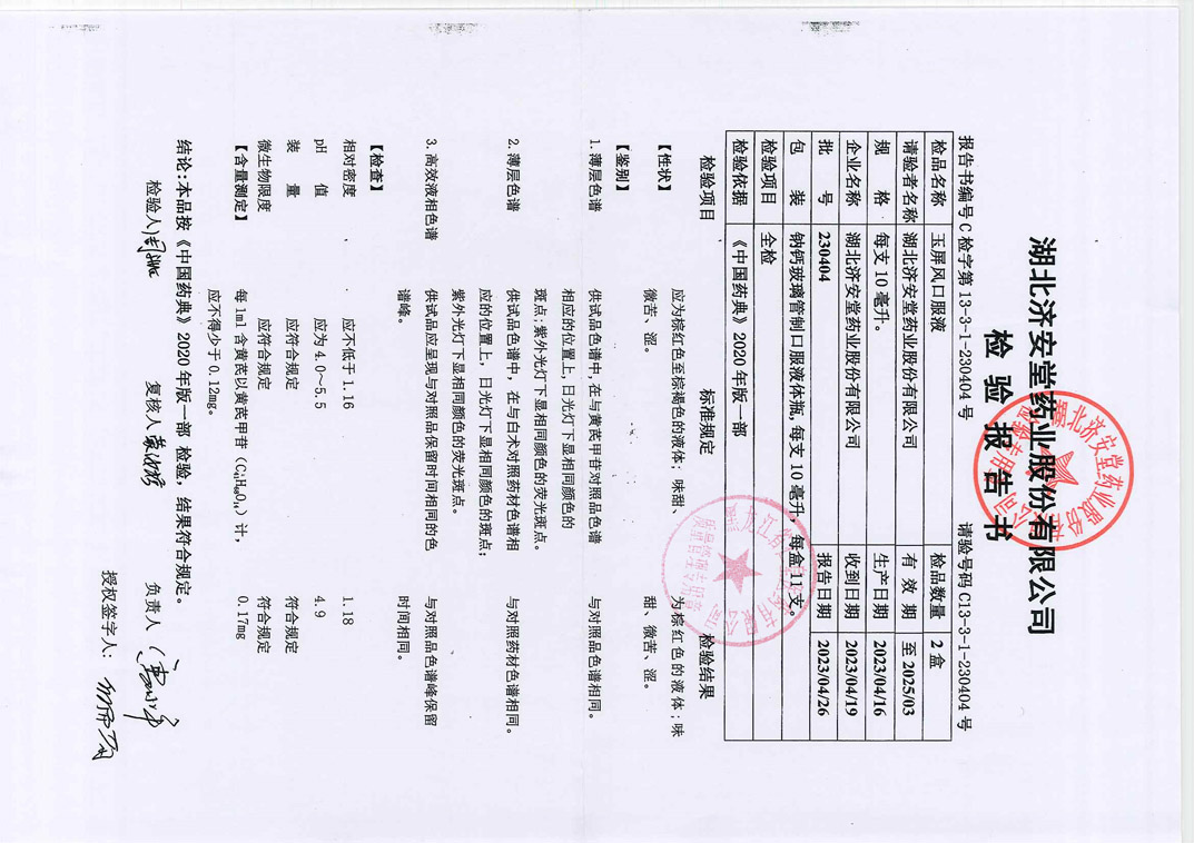 玉屏风口服液2304