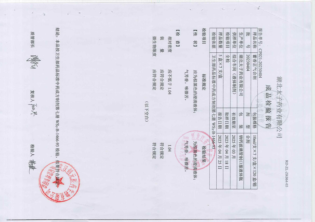 藿香正气合剂2023