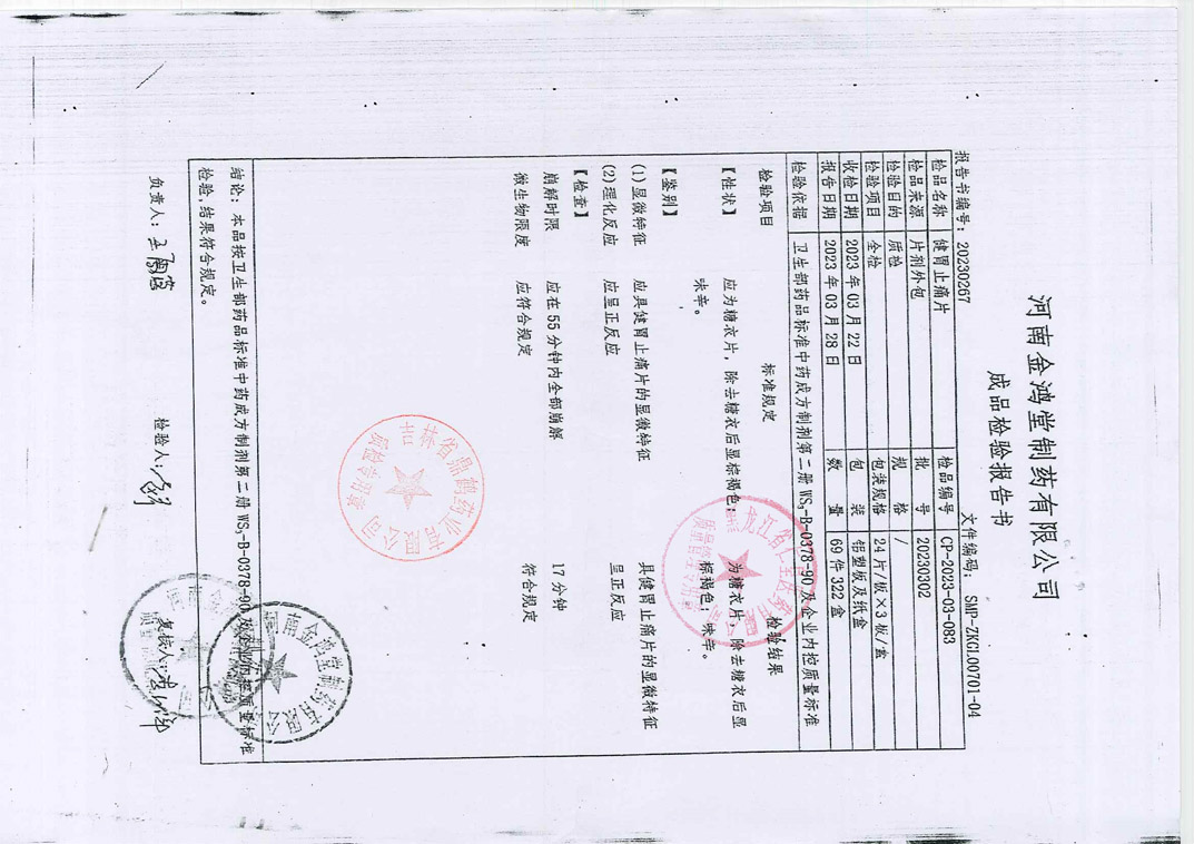 健胃止痛片20230