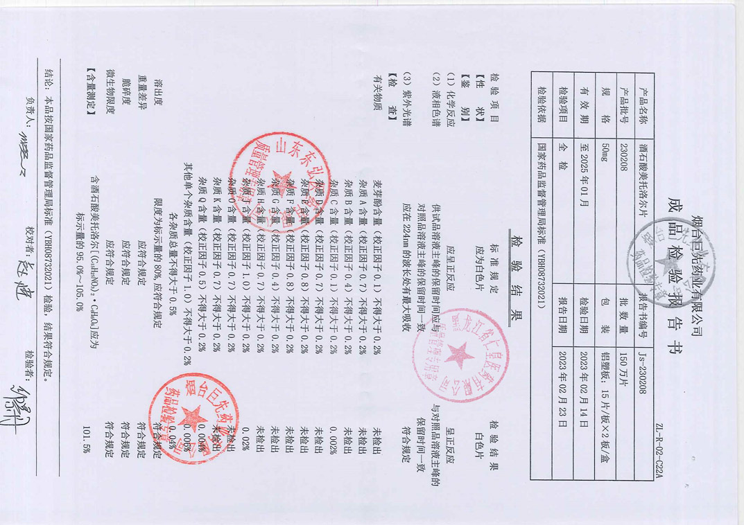 酒石酸美托洛尔片23