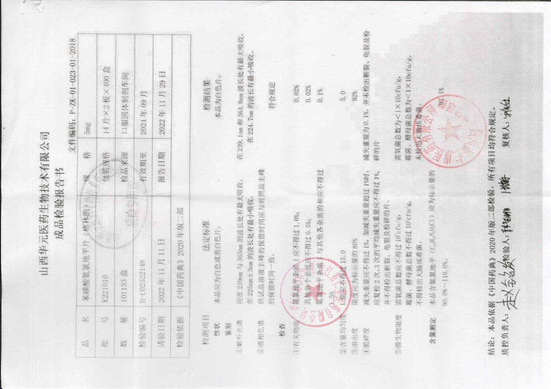 苯磺酸氨氯地平片K2