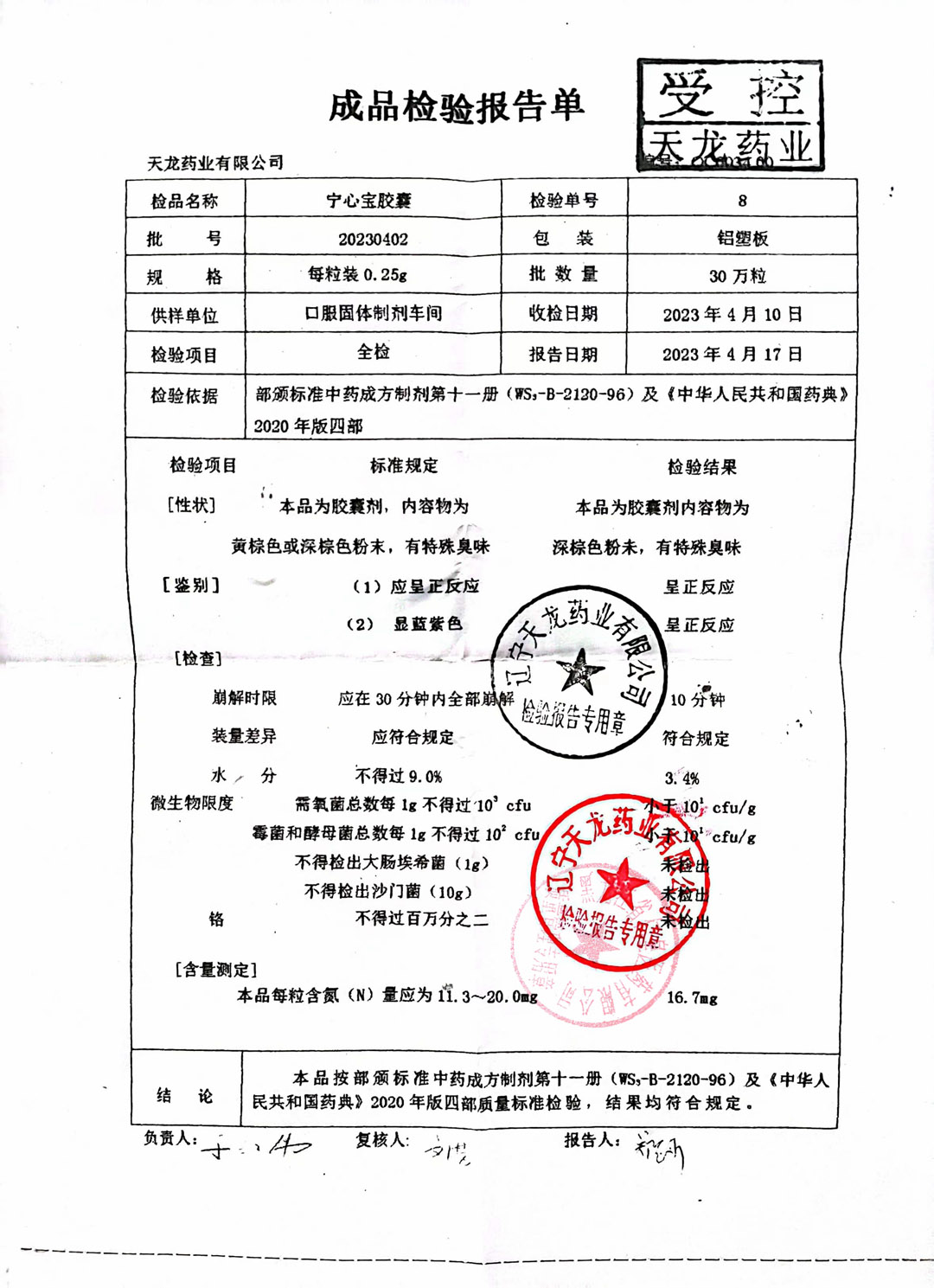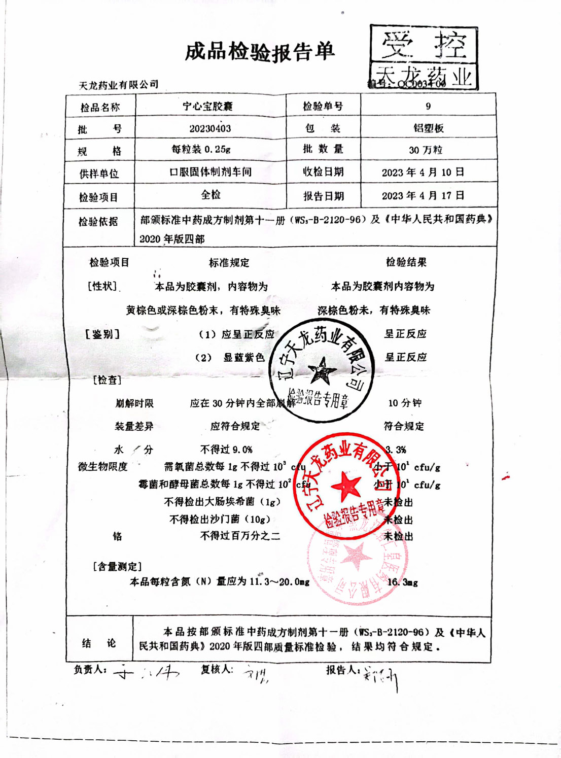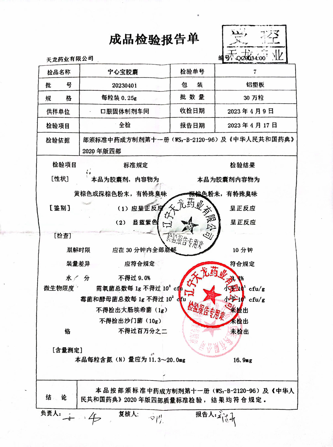 宁心宝胶囊20230