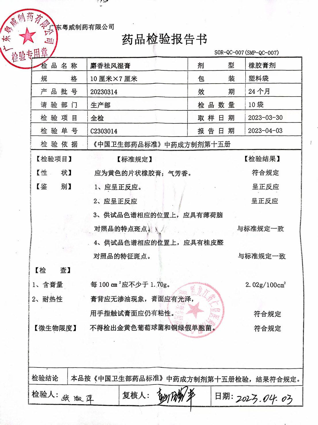 麝香祛风湿膏2023