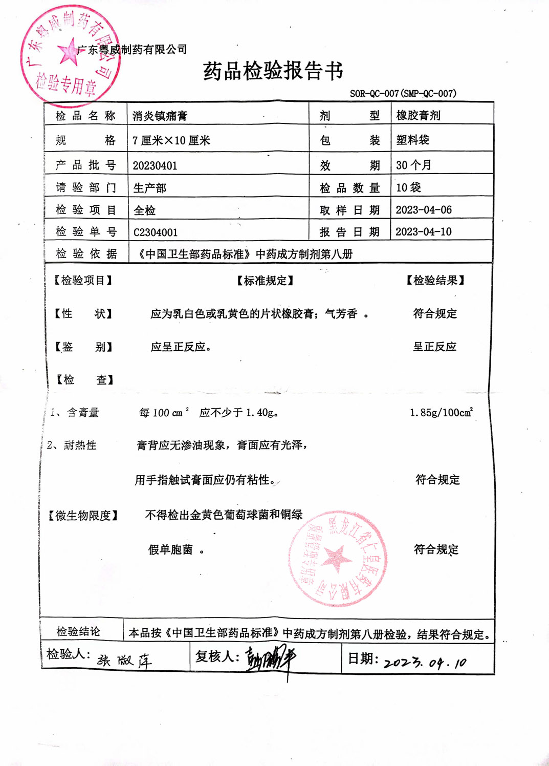 消炎镇痛膏20230