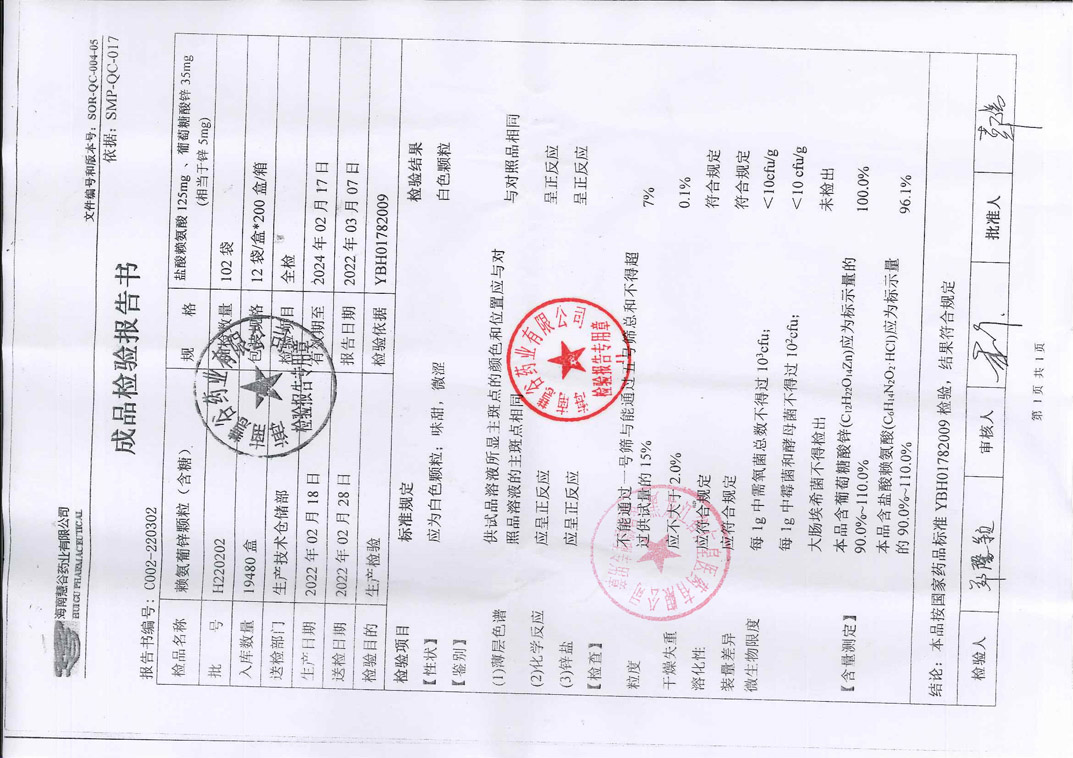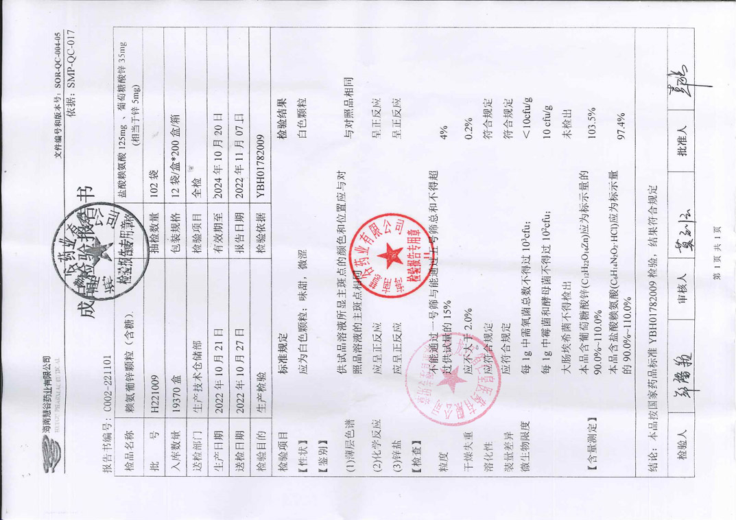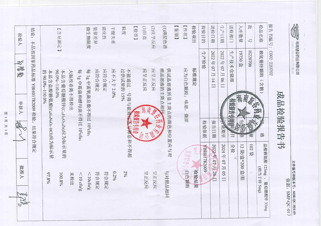 赖氨葡锌颗粒H220